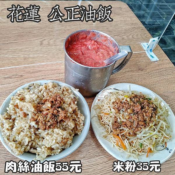 花蓮在地30年的老味道,老闆很好客,油飯米粉必吃,油飯太晚來還會吃不到喔😋